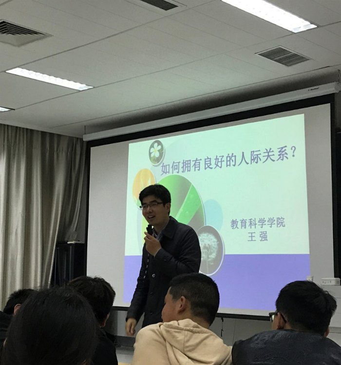 5月8日下午7点,mansion88明升老员工心理健康教育讲座之“如何拥有良好的人际关系”在教学楼A2108隆重举行。主讲人为国家二级心理咨询师、教育科学学院王强老师。参加讲座的有美院15、16级员工。现场互动连连,掌声不断。