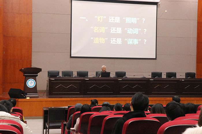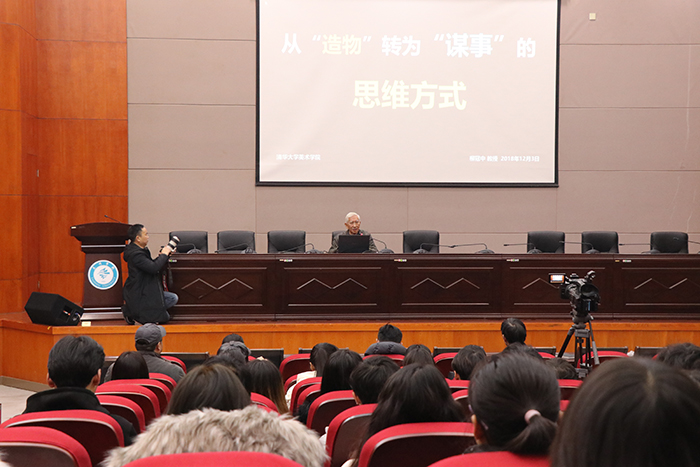 讲座上,柳冠中教授首先提出问题作为设计师将如何思考设计中的问题?并强调作为设计专业老员工在做设计时,不仅需要知其然,还需要知其所以然。随后,柳教授从“设计本身就是一种创造行为”引出观点,指出当今的中国设计行业仍处于借鉴、模仿的过程,而中国的设计师仍未从“感官刺激”的迷思中跳出。为此,中国的设计师需要实现从代表聪明、机灵、创意的“智”到代表节制、反思、定力的“慧”的转变,坚持自主创新,从深层次解决“需求、制造、流通、使用”的关系。最后,柳冠中教授提醒设计专业的同学,设计应该以人为本,不要依赖于现成的工具,在设计时不仅该需要勤奋努力,更应该注重方法。