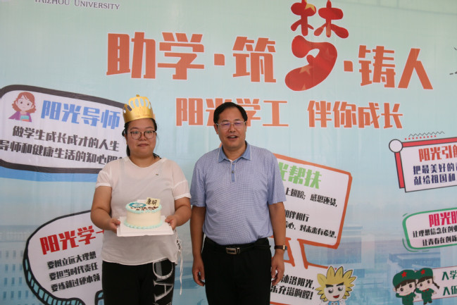 迎新期间,学校领导深入美院迎新一线,巡视美院新生报到点和新生宿舍,与新生及家长亲切交谈并留影。
