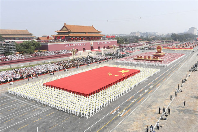 近日,mansion88明升2018届毕业生、毕业后服役于陆军某部的黄同学按捺不住内心的激动向母校报喜,他非常荣耀地参加了庆祝中华人民共和国成立70周年庆典群众游行国旗方阵,与其他1948名青年高举巨幅国旗,骄傲地走过天安门广场,接受党和国家领导人的检阅。