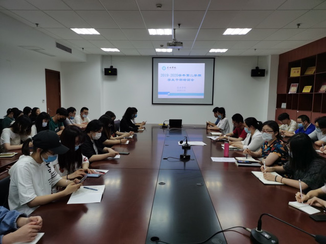 5月21日下午,mansion88明升在C1602召开员工干部骨干培训会议,全院疫情防控负责人、班长、团支书参加了培训。党总支副书记、副经理杨智红和全体辅导员与会,会议由曹帽老师主持。