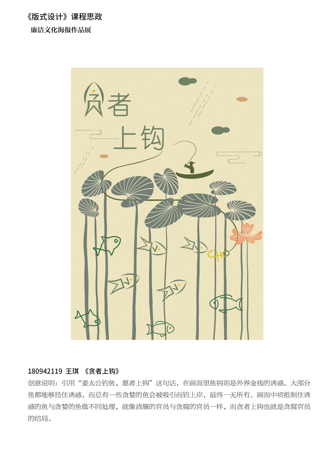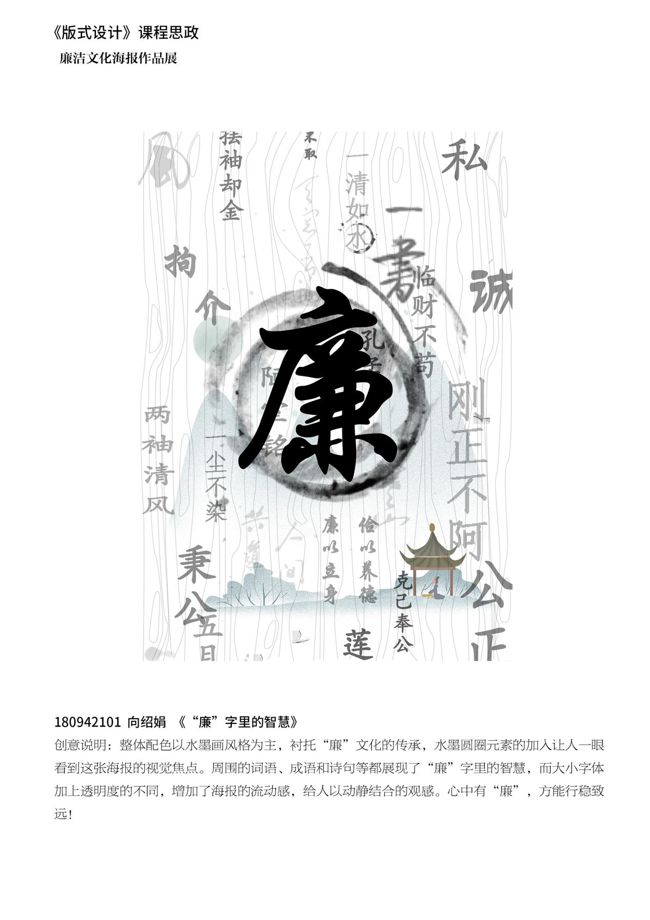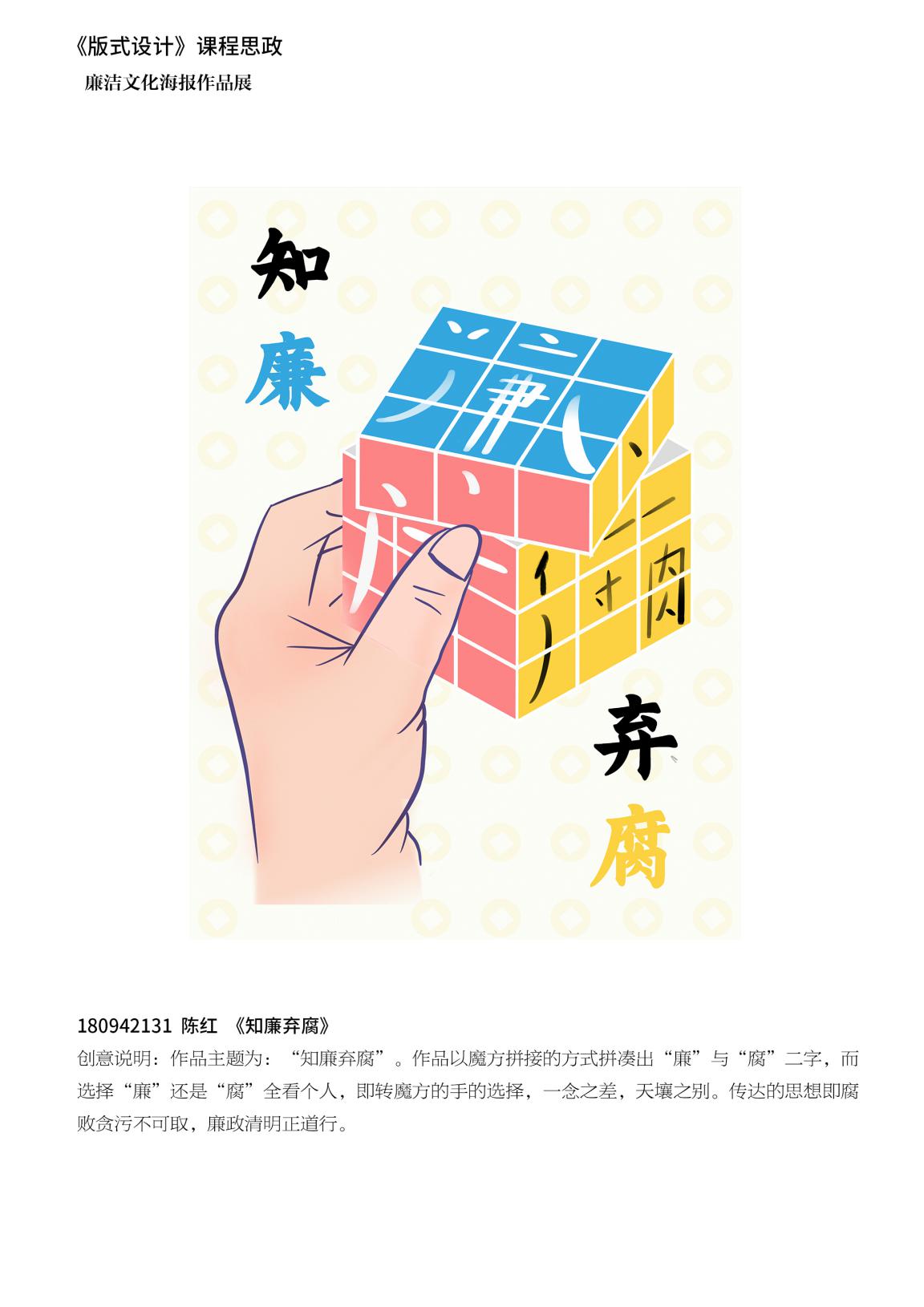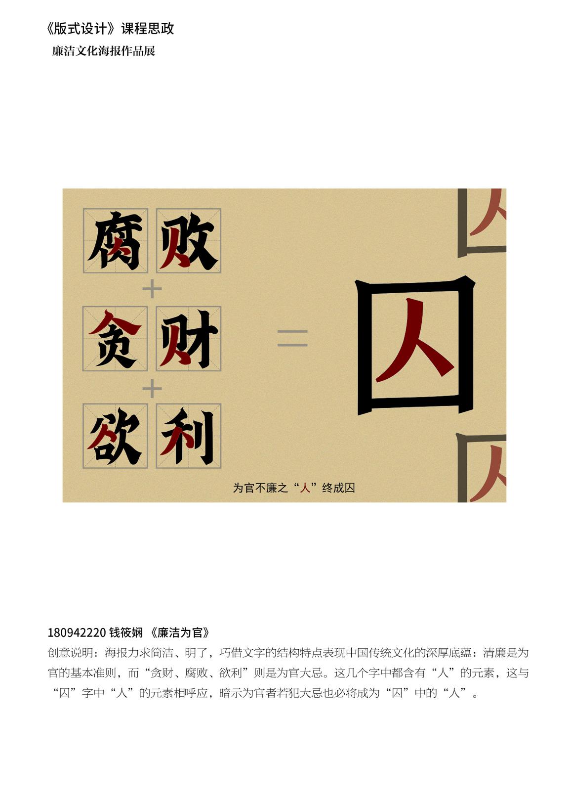 《版式设计》课程积极挖掘本课程的思想政治资源,任课教师带领员工欣赏国内优秀版式设计作品,讲授现代版式设计中对中国优秀传统文化的借鉴,讲授中式设计背后的中国传统美学精神、中国人的思维方式,讲授中国设计走向世界的故事等,把传统融入教学,在提高专业知识和技能的同时,学习其中蕴含的中国优秀传统文化,寓价值观引导于知识传授和能力培养之中,以美育人、以美化人,积极弘扬中华美育精神,引导员工自觉传承和弘扬中华优秀传统文化,建立正确的世界观、人生观、价值观。《版式设计》思政课程的学习,不但帮助员工掌握相关设计专业知识,还帮助他们塑造品格,提升审美素养、陶冶情操、温润心灵、激发创造创新活力,成为德智体美劳全面发展的社会主义建设者和接班人。在本课程中的“海报中的版式设计”章节,不仅带领员工学习中国优秀海报设计,还将课程作业与公司党总支主办的“mansion88明升2020年度廉政文化作品展”相结合,带领18视觉传达设计专业学习和创作廉政文化海报。今后,还将继续带领员工参加其他此类设计竞赛,让员工充分在竞赛中提高专业水平、展示其设计作品、体现其积极的精神面貌。