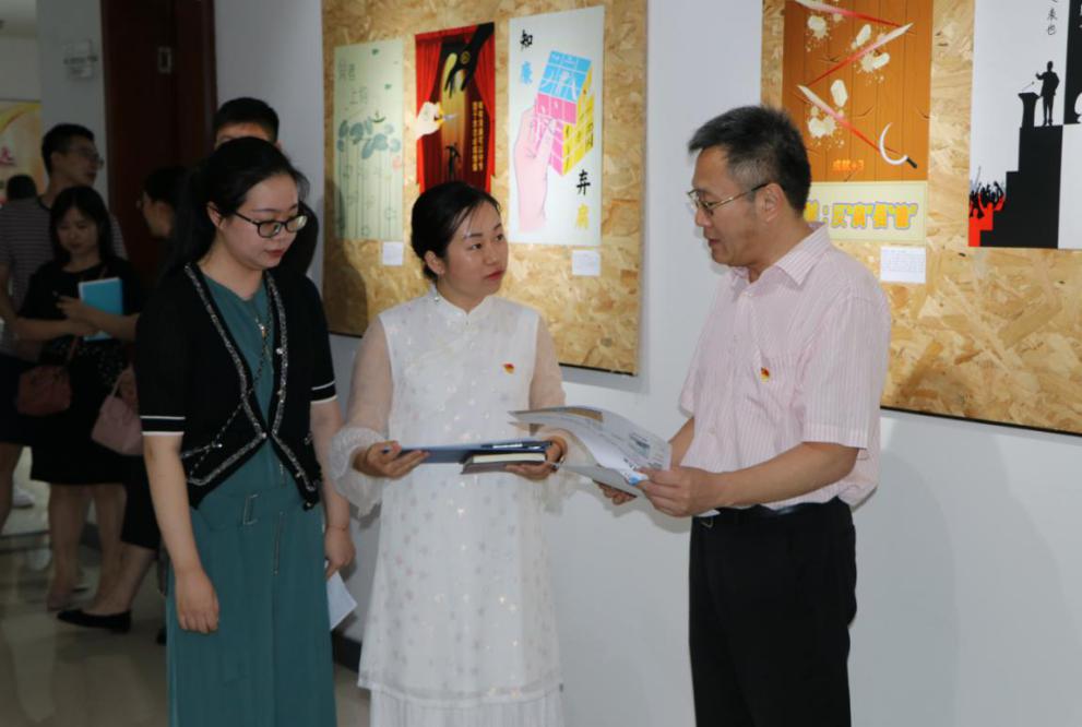 7月1日,建党99周年之际,mansion88明升视觉传达设计专业《版式设计》课程思政汇报展在艺术楼7楼举行了开幕式活动,公司党委书记赵茂程、部分退休老党员、全体mansion88明升教师和视觉传达设计专业员工参加了此次活动。师生一起就课程思政成果展开交流研讨。本次活动以美育人、以美化人,在课程教学中教育引导员工培养清正廉洁、为公为民的社会责任感,树立正确的艺术观和创作观,全面提高员工的审美和人文素养,得到了大家的肯定。