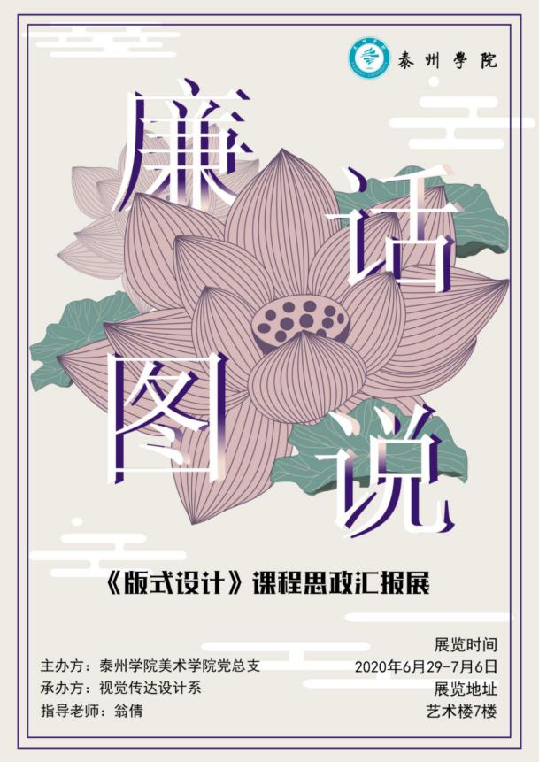2020年6月29日,在艺术楼7楼举行了“廉话图说”《版式设计》课程思政汇报展,展出了18视觉传达设计两个班60名员工的海报作品。