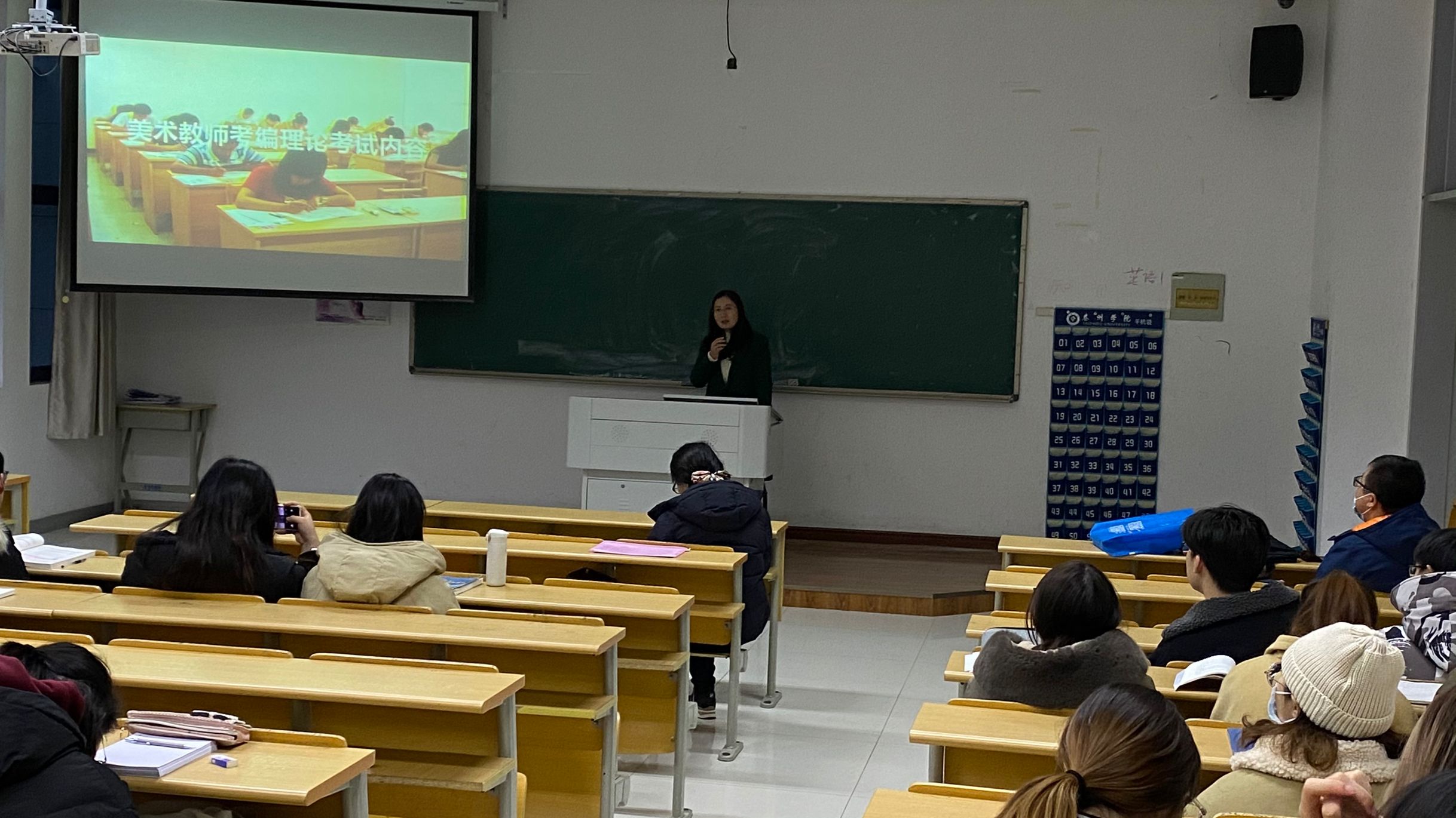 讲座中,她从美术教师考编理论考试内容、理论考试题型、考试真题解读、考编面试礼仪和有关注意事项等方面,重点介绍了美术类考编的有关情况。同学们认真聆听、仔细记录,与叶老师提问互动,讲座取得良好效果。