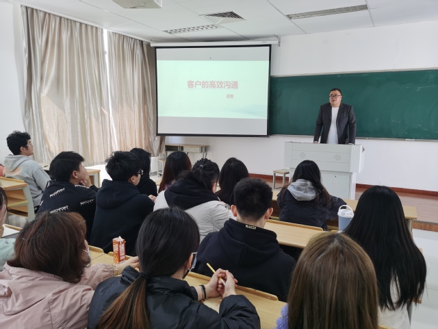 吕爽以风趣幽默的开场和妙趣横生的互动完成了开班仪式,一下拉近了与同学们的距离。随后,他给同学们上了以“高效沟通”为主题的第一课。他围绕沟通心态、沟通逻辑以及沟通技巧生动地给大家介绍了如何进行高效沟通。课上他多次与同学们互动,现场演绎与客户沟通的场景,大家聚精会神聆听,气氛十分热烈。