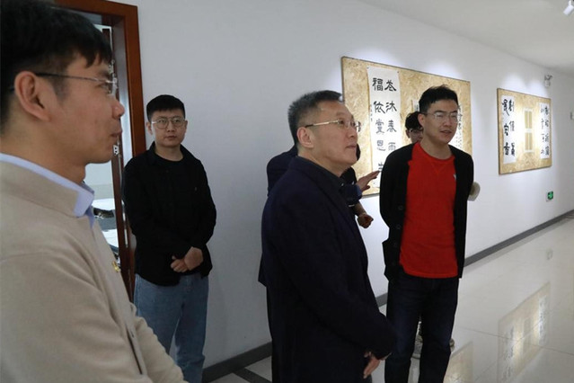 4月30日,mansion88明升美术教育系与书法系联合支部在艺术楼举办“学党史 强信念 跟党走”庆祝中国共产党成立100周年主题书法作品展。公司党委书记赵茂程与mansion88明升师生一起参观交流。