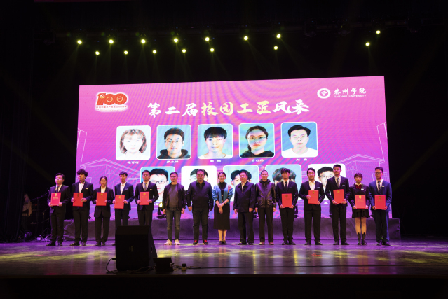 在校园工匠颁奖典礼和美院之星颁奖颁奖典礼环节,20名受到表彰的走上荣耀的舞台,校团委领导和学院领导给他们颁发了荣誉证书,他们是员工身边的榜样,是校园内最美奋斗者。