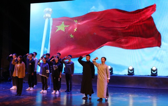 朗诵《党旗颂》铿锵有力,热情激昂,表达了对中国共产党的无限拥护与赞美;《觉醒年代》舞台剧充满着一种热血沸腾,催人向上的力量;书香琴韵让大家欣赏到书墨笔韵与筝曲旋律珠联璧合的独特魅力;扬剧的《鸿雁传书》让同学们感受到地方戏曲的无限魅力;跆拳道表演《龙拳》炫酷的踢板给大家带来了视觉上的盛宴;《COS秀》突破次元壁,再现动漫仲的人物神韵。紧扣主旋律的节目中激发了同学们爱党爱国爱社会主义情感,更加坚定不移地跟党走,为美好生活而奋斗。